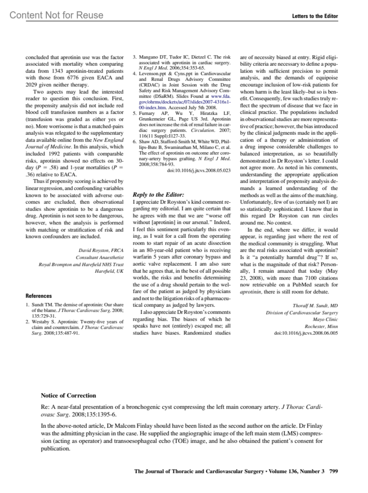 Journal of Thoracic & Cardiovascular Surgery 136(3):p 799, September 2008.