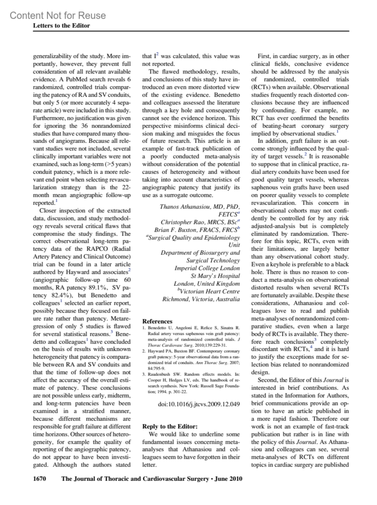 Journal of Thoracic & Cardiovascular Surgery 139(6):p 1670-1671, June 2010.