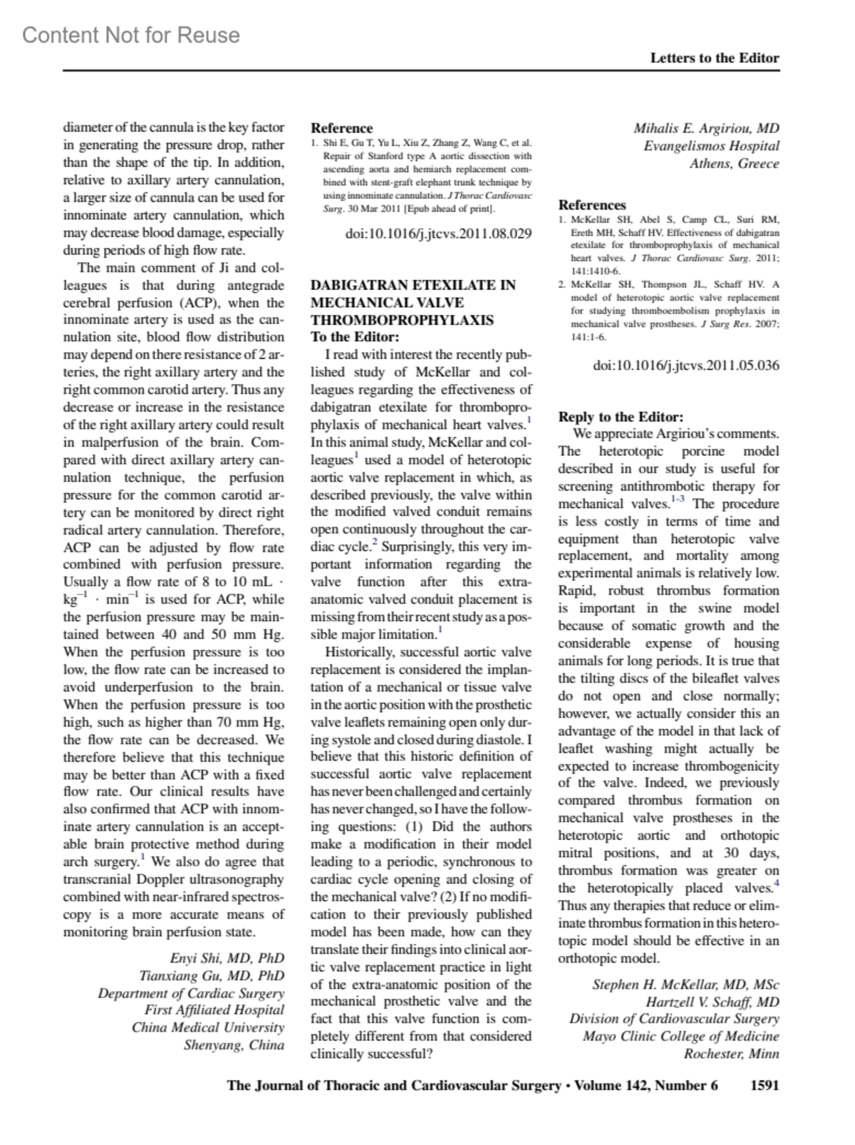 Journal of Thoracic & Cardiovascular Surgery 142(6):p 1591-1592, December 2011.