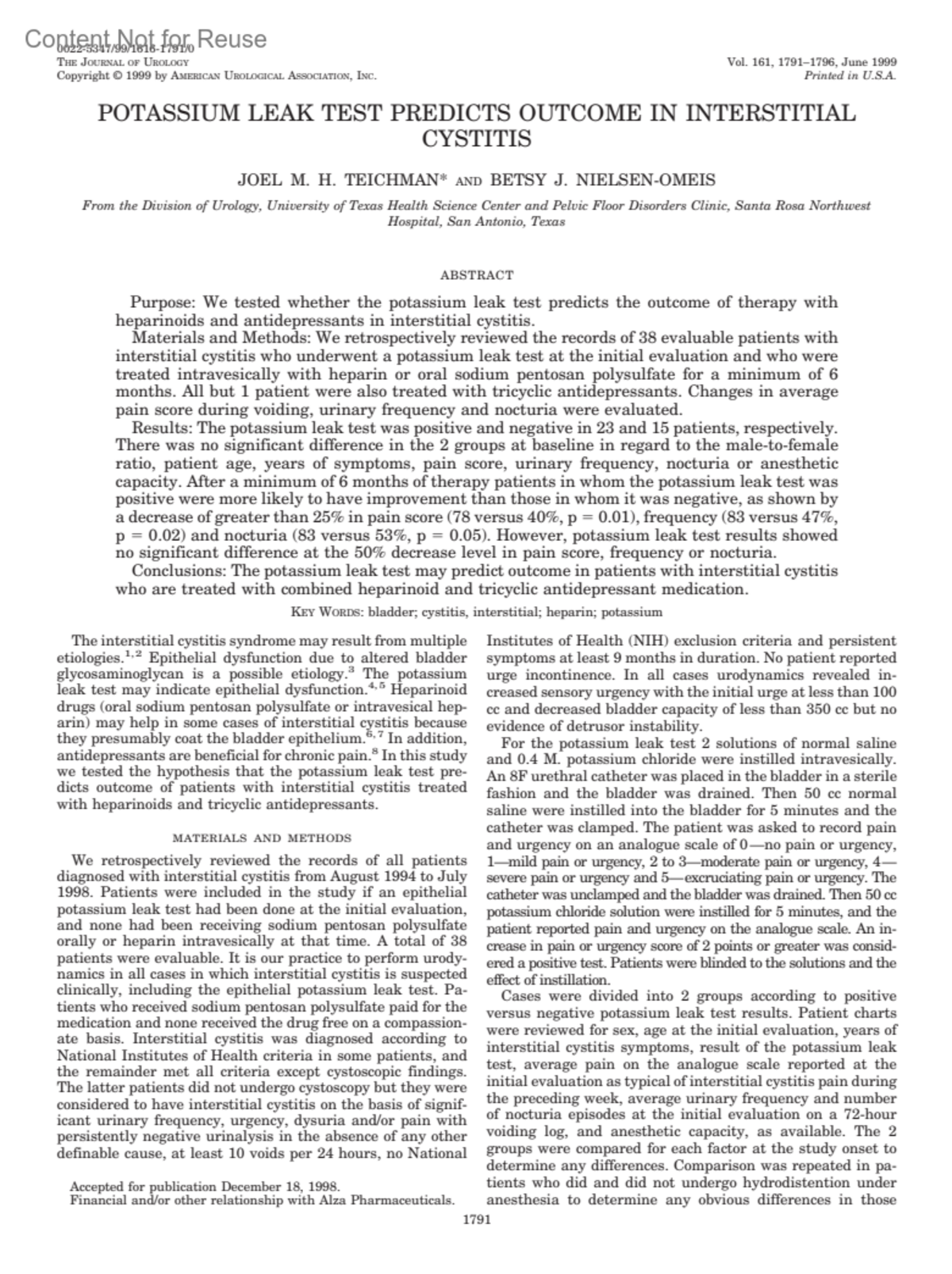 POTASSIUM LEAK TEST PREDICTS OUTCOME IN INTERSTITIAL CYSTITIS