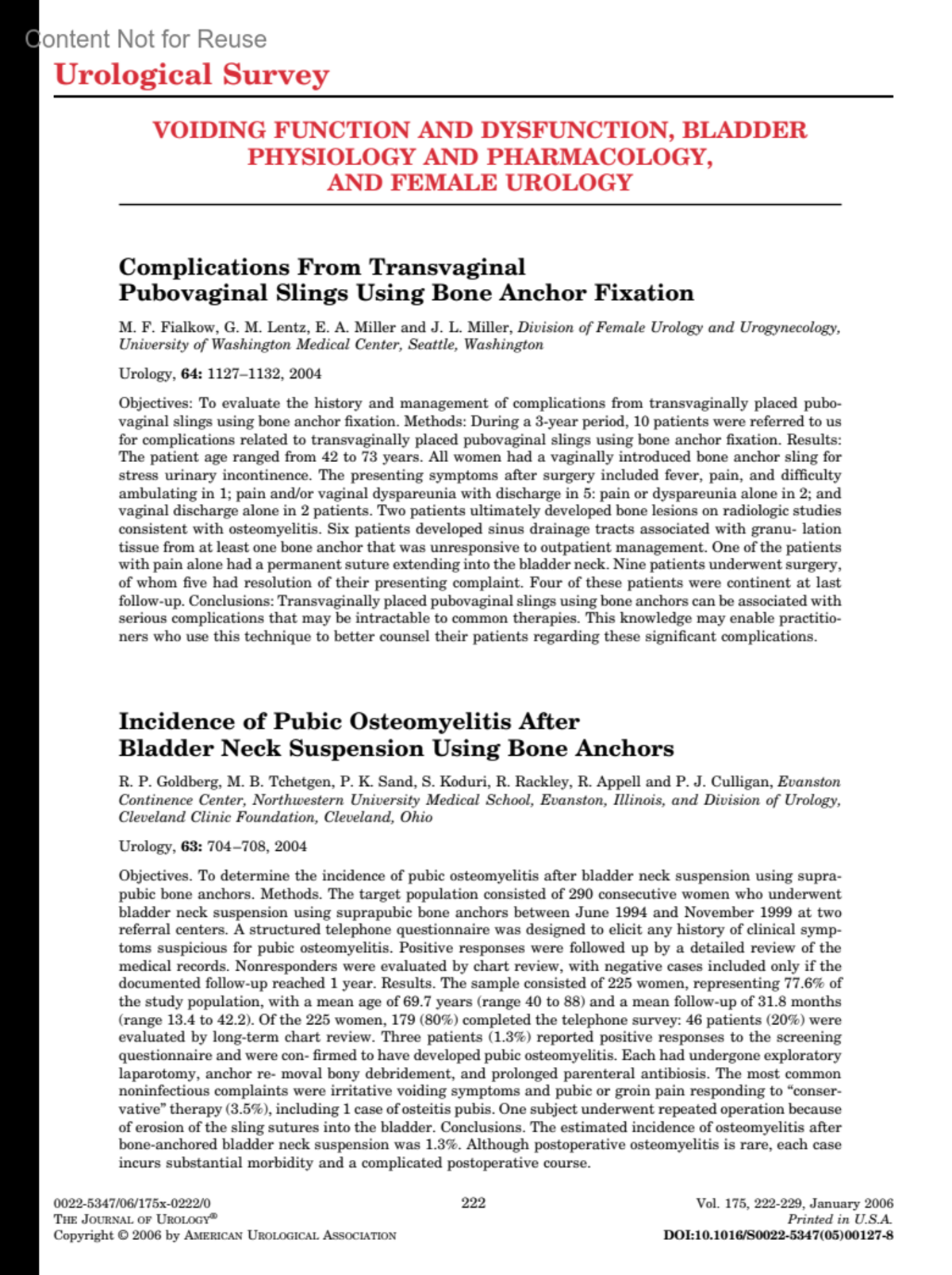 Incidence of Pubic Osteomyelitis After Bladder Neck Suspension Using Bone Anchors