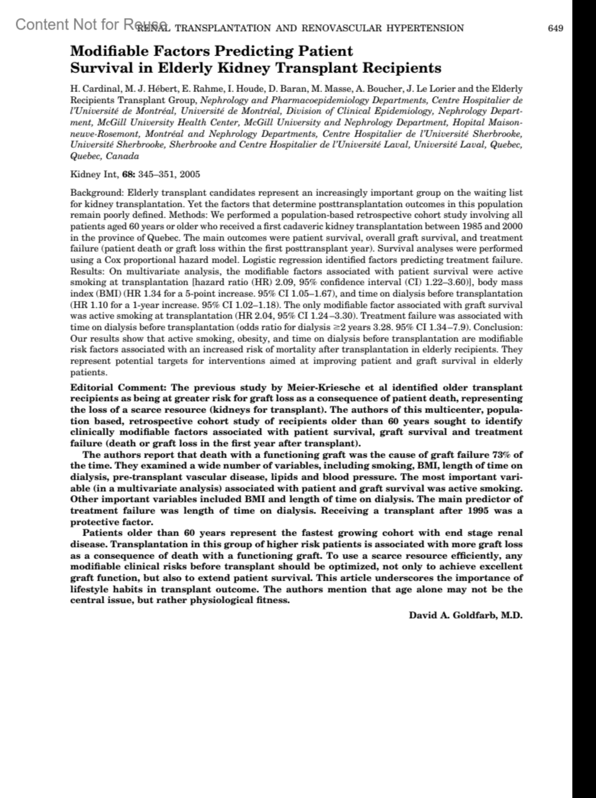 Modifiable Factors Predicting Patient Survival in Elderly Kidney Transplant RecipientsGoldfarb, David A. M. D.Journal of Urology 175(2):p 649, February 2006.Copyright © 2006 by the American Urological Association, Inc.