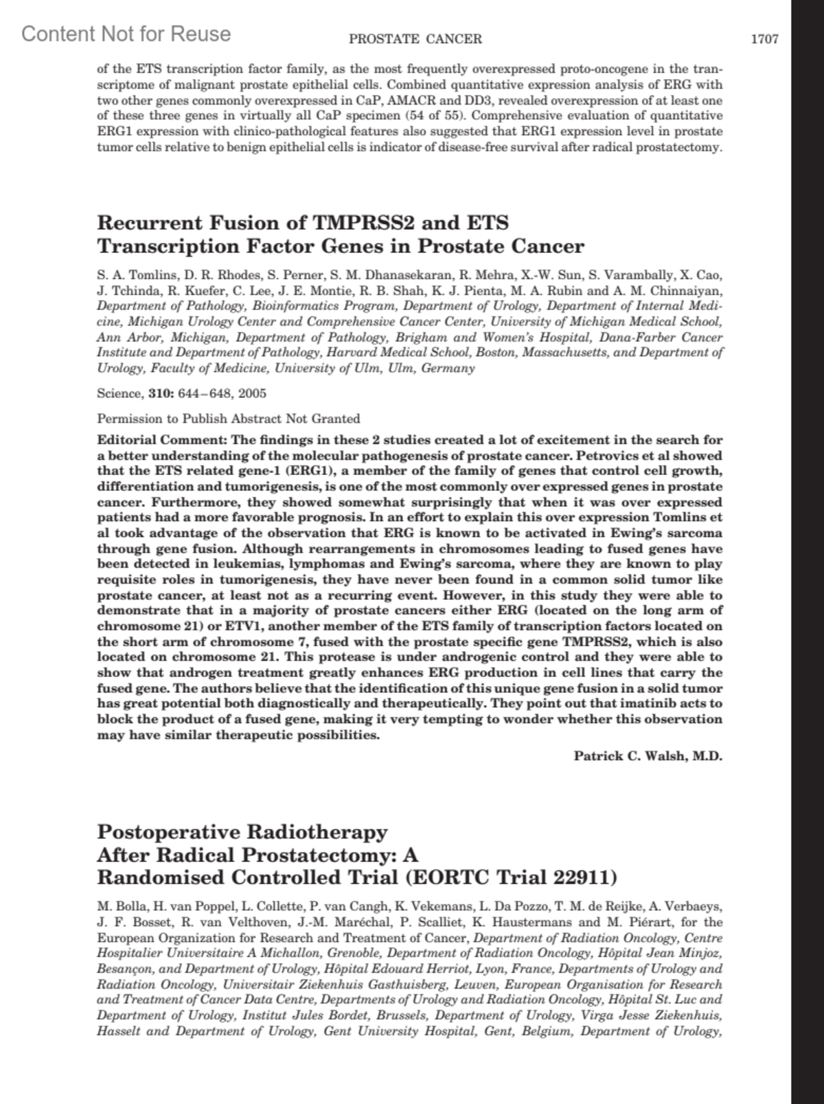 Recurrent Fusion of TMPRSS2 and ETS Transcription Factor Genes in Prostate Cancer