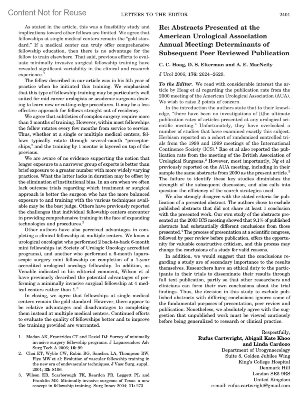 Abstracts Presented at the American Urological Association Annual MeetingDeterminants of Subsequent Peer Reviewed Publication