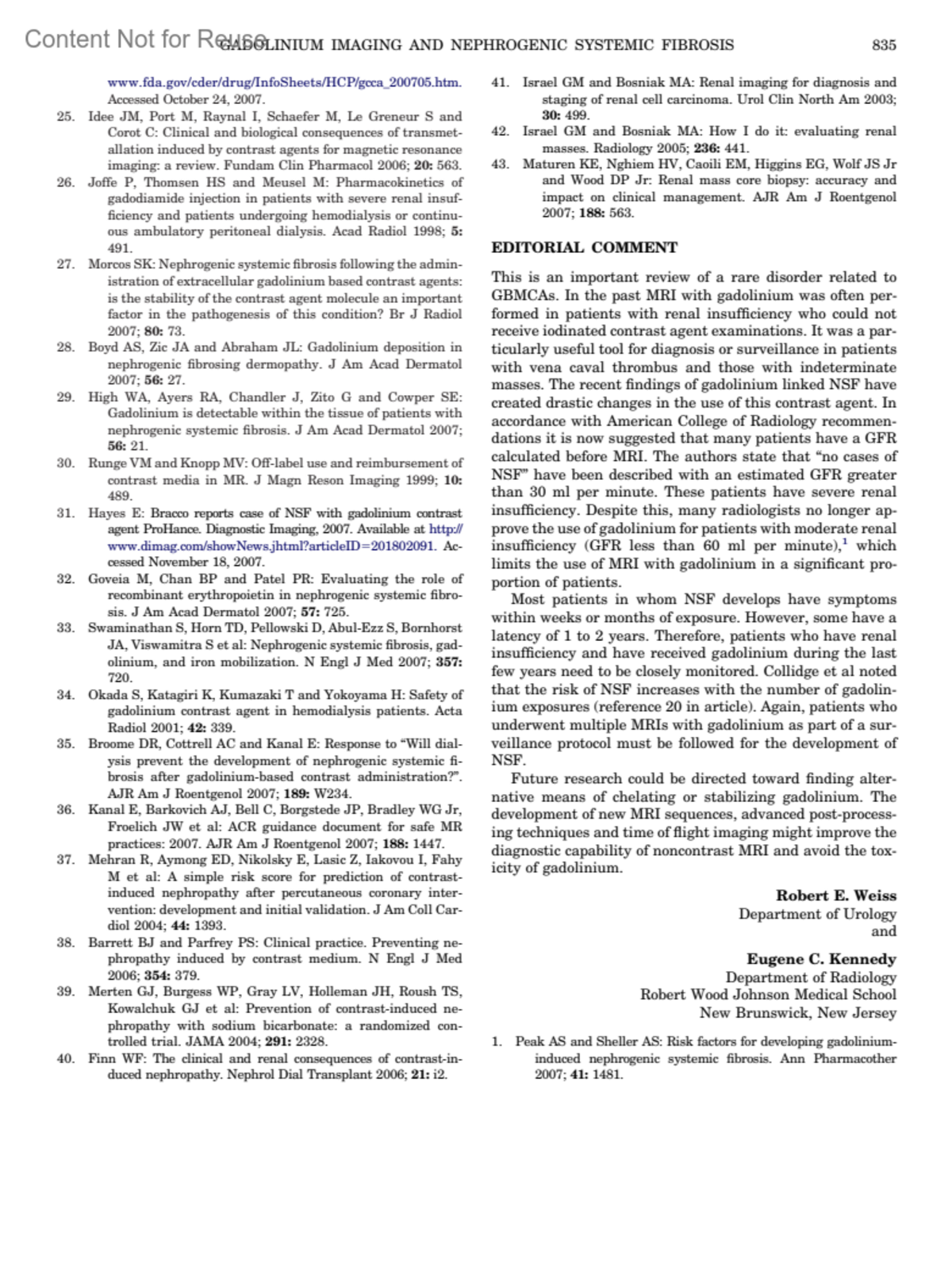 Association of Gadolinium Based Magnetic Resonance Imaging Contrast Agents and Nephrogenic Systemic Fibrosis