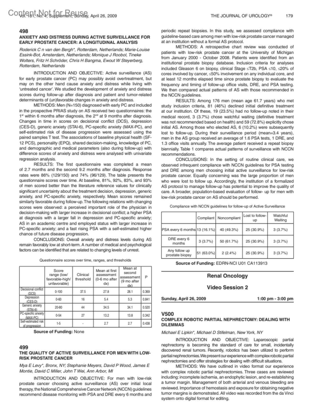 ANXIETY AND DISTRESS DURING ACTIVE SURVEILLANCE FOR EARLY PROSTATE CANCER: A LONGITUDINAL ANALYSIS