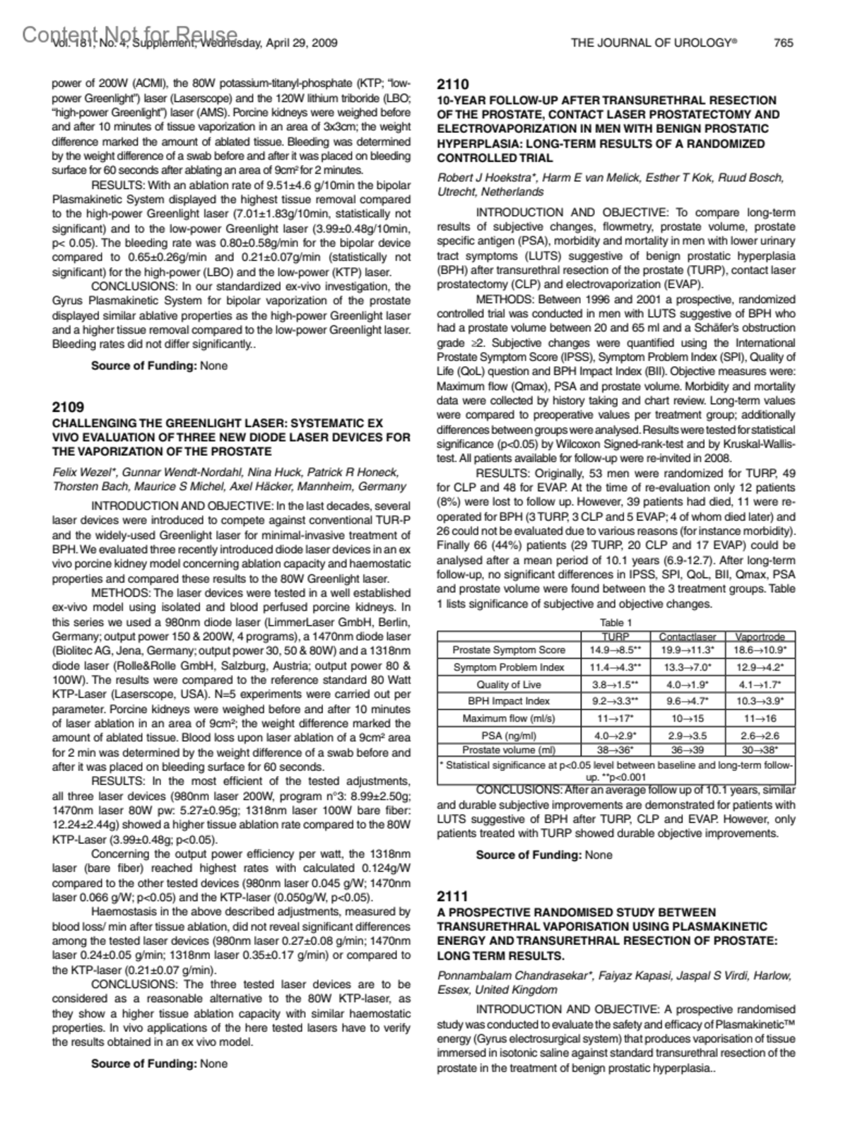 Journal of Urology 181(4):p 765, April 2009.