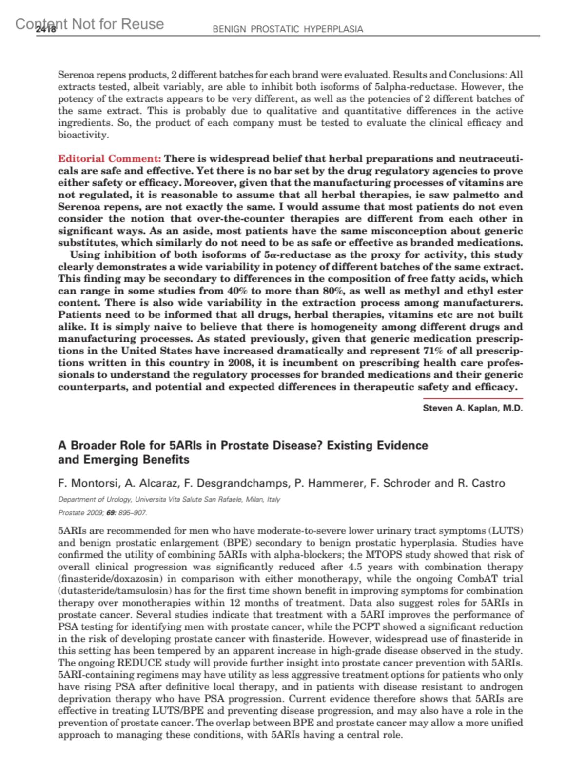 A Broader Role for 5ARIs in Prostate Disease? Existing Evidence and Emerging BenefitsKaplan, Steven A. M.D.Journal of Urology 182(5):p 2418-2419, November 2009.Copyright © 2009 by the American Urological Association, Inc.