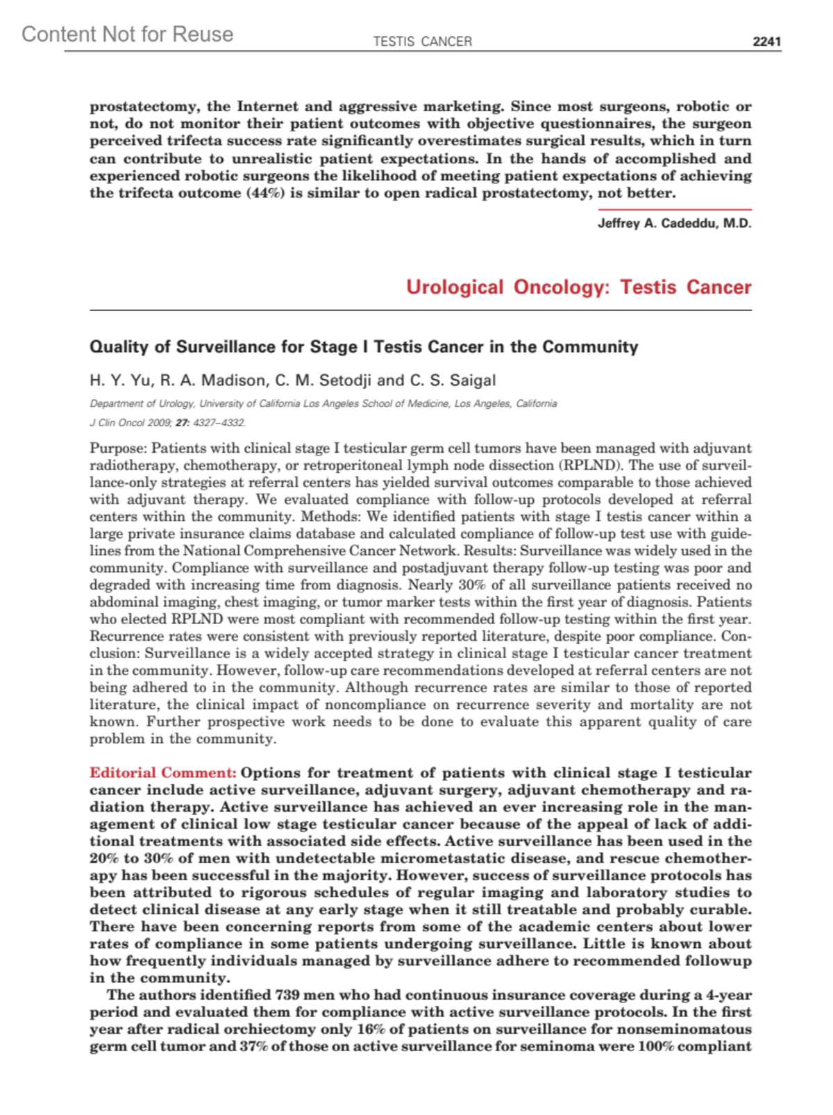 Urological OncologyTestis CancerJournal of Urology 183(6):p 2241-2242, June 2010.Copyright © 2010 by the American Urological Association, Inc.