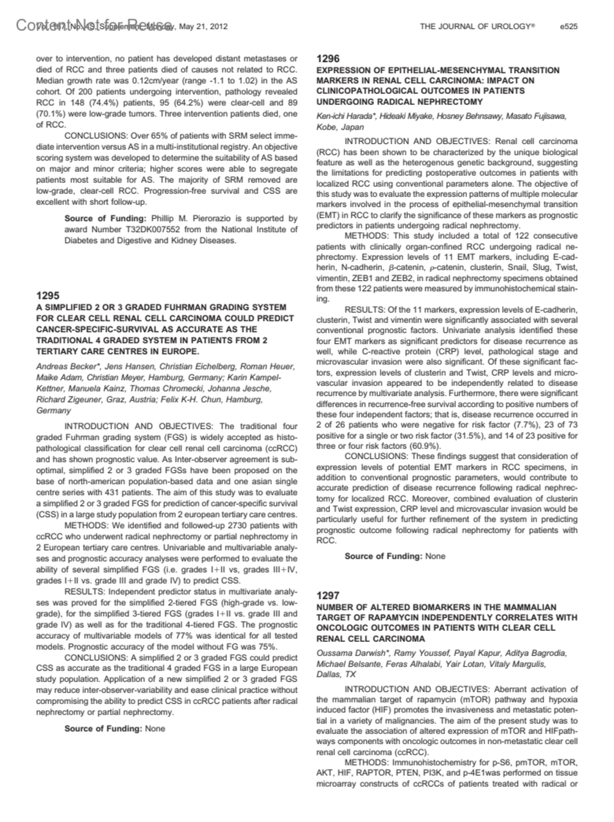 Journal of Urology 187(4):p e525-e526, April 2012.