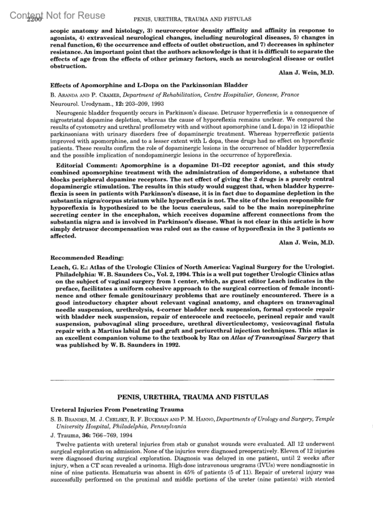 Penis, Urethra, Trauma and FistulasJournal of Urology 152(6):p 2200-2202, December 1994. | DOI: 10.1016/S0022-5347(17)32352-2Copyright © 1994 by the American Urological Association, Inc.