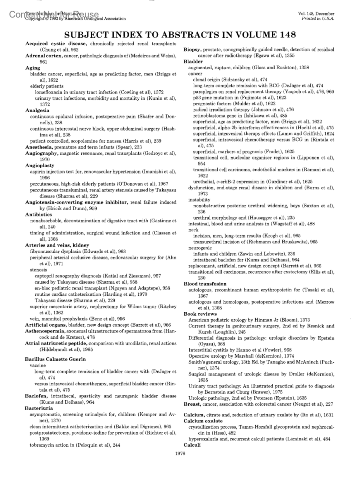 Subject Index to Abstracts in Volume 148Journal of Urology 148(6):p 1976-1981, December 1992. | DOI: 10.1016/S0022-5347(17)37100-8Copyright © 1992 by the American Urological Association, Inc.