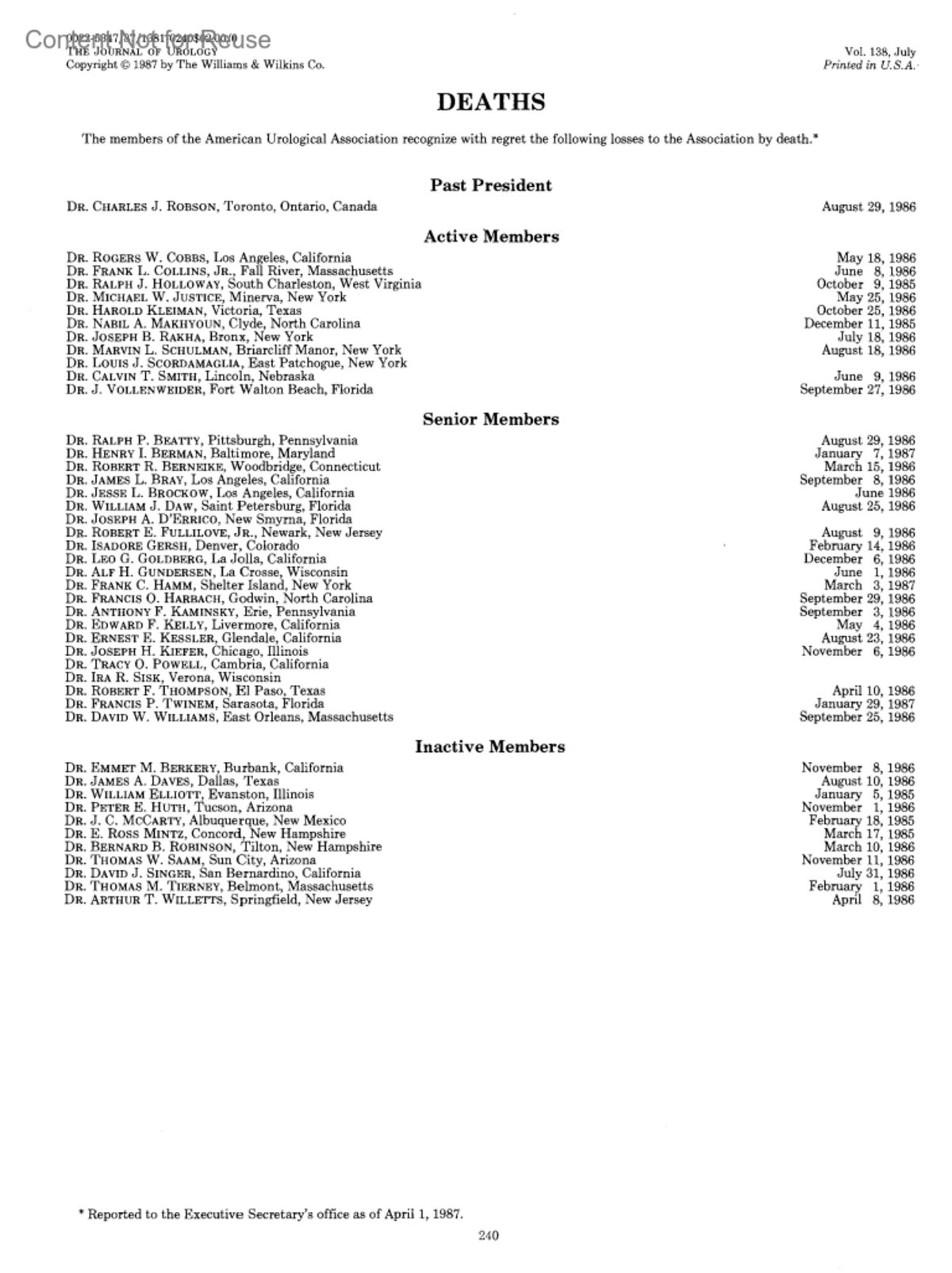 DeathsJournal of Urology 138(1):p 240-244, July 1987. | DOI: 10.1016/S0022-5347(17)43108-9Copyright © 1987 by the American Urological Association, Inc.