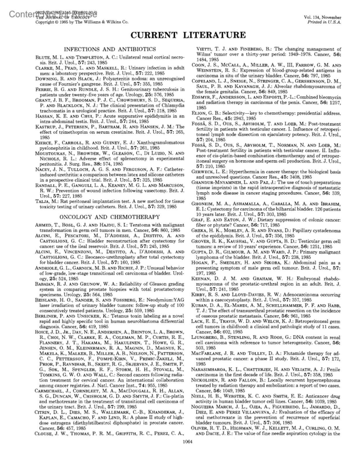 Current LiteratureJournal of Urology 134(5):p 1064-1066, November 1985. | DOI: 10.1016/S0022-5347(17)47630-0Copyright © 1985 by the American Urological Association, Inc.