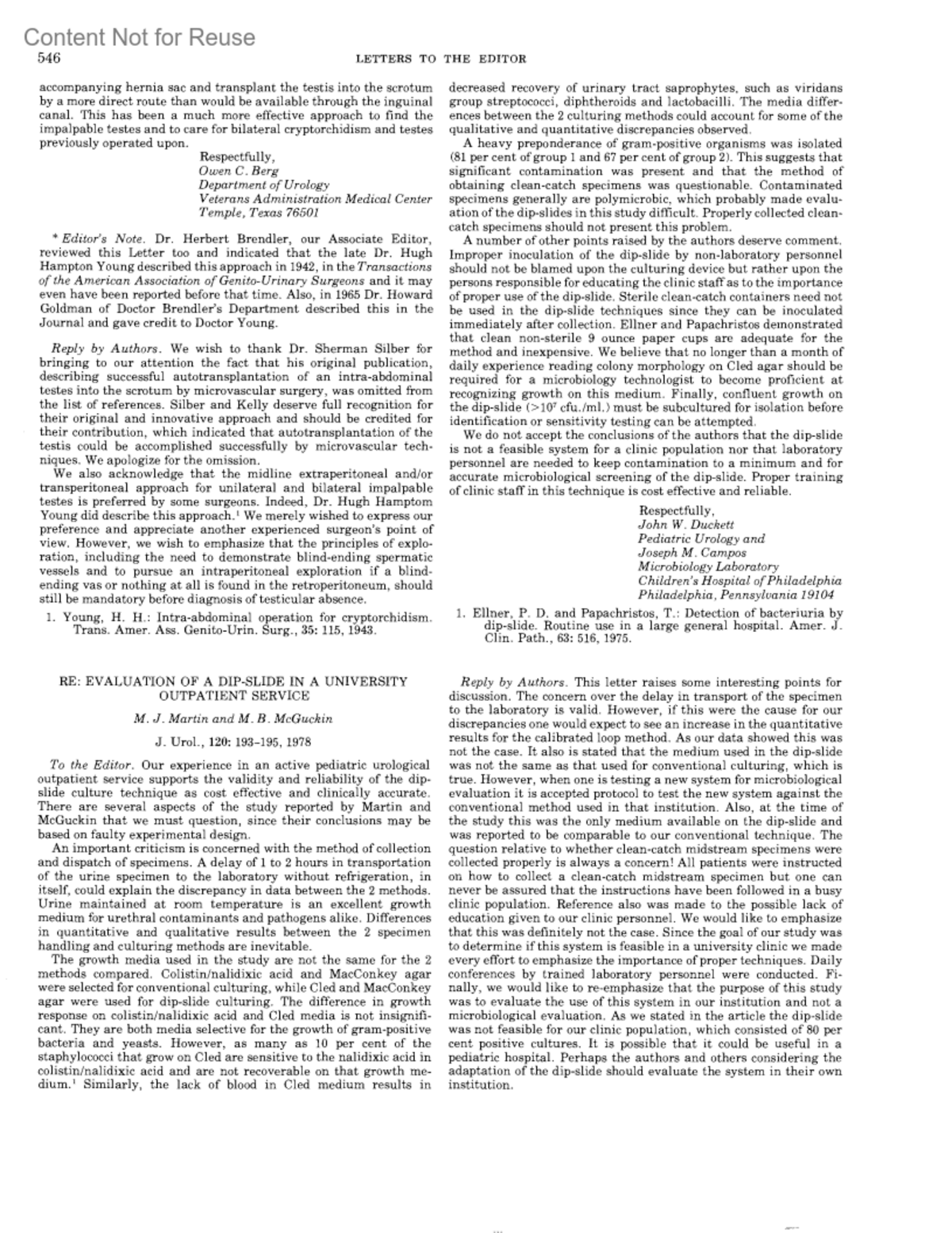 REPLY BY AUTHORSJournal of Urology 121(4):p 546, April 1979. | DOI: 10.1016/S0022-5347(17)56870-6Copyright © 1979 by the American Urological Association, Inc.