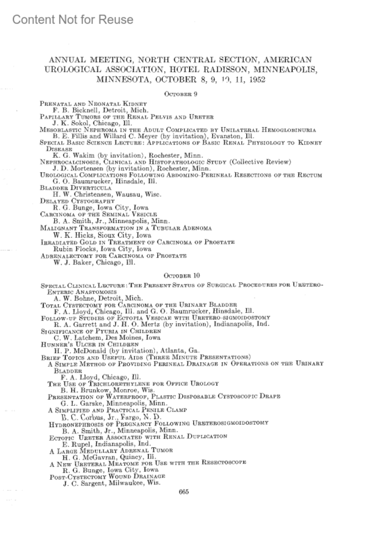 Annual Meeting, North Central Section, American Urological Association, Hotel Radisson, Minneapolis, Minnesota, October 8, 9, 10, 11, 1952