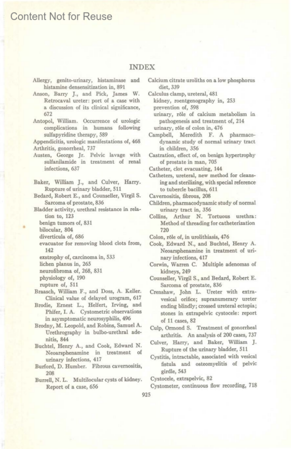 INDEXJournal of Urology 43(6):p 925-930, June 1940. | DOI: 10.1016/S0022-5347(17)71476-0Copyright © 1940 by the American Urological Association, Inc.