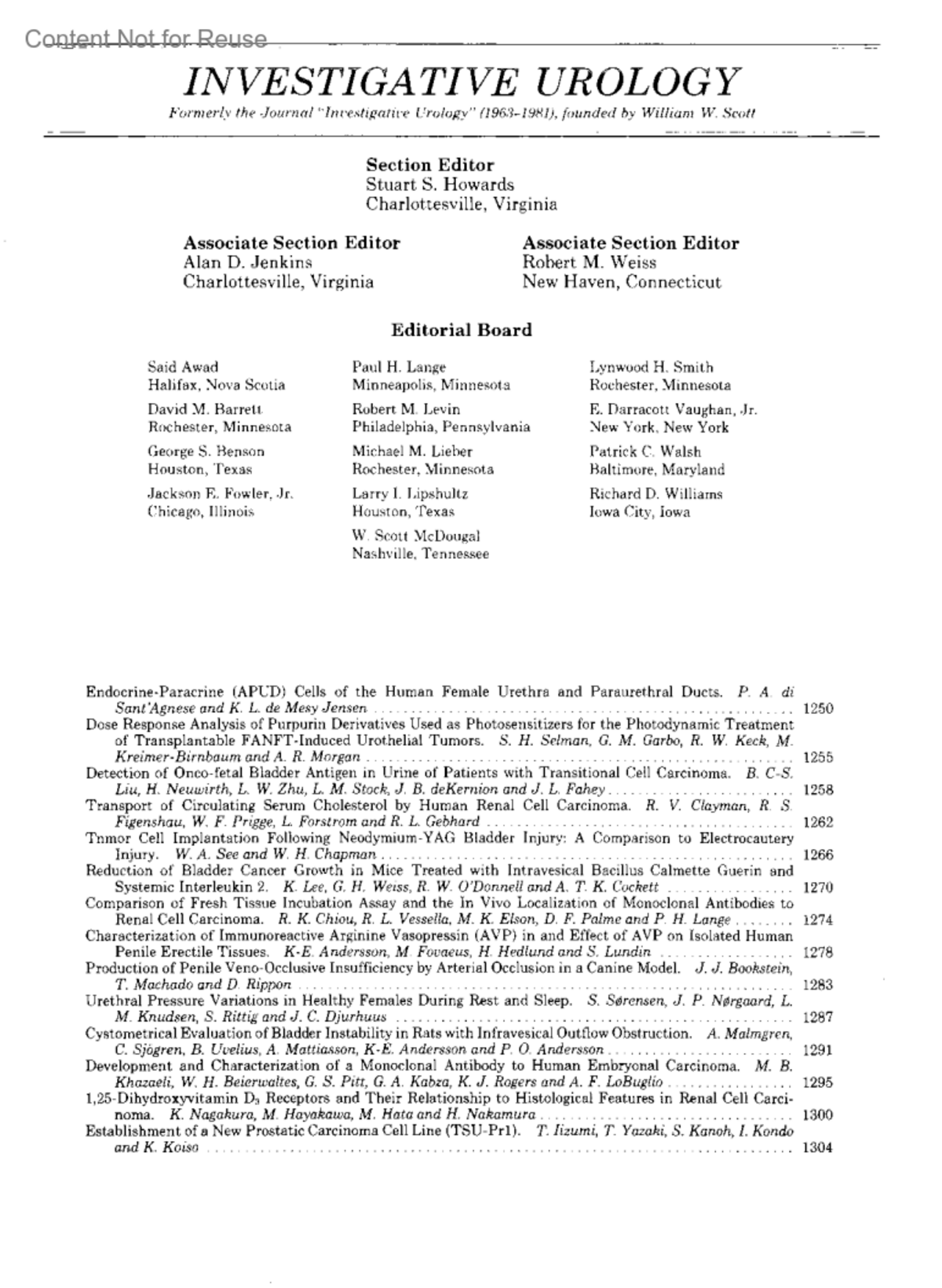 Editorial BoardJournal of Urology 137(6):p 1249, June 1987. | DOI: 10.1016/S0022-5347(17)74681-2Copyright © 1987 by the American Urological Association, Inc.