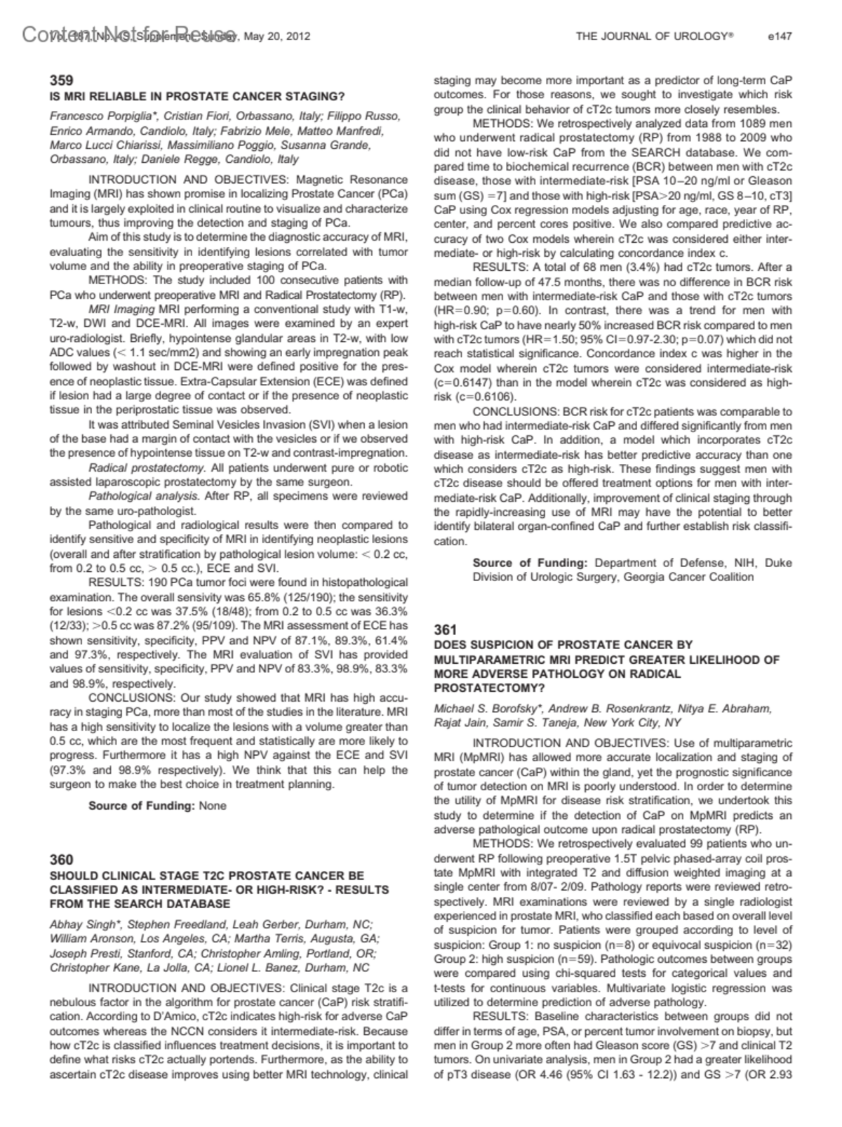 Journal of Urology 187(4):p e147, April 2012.