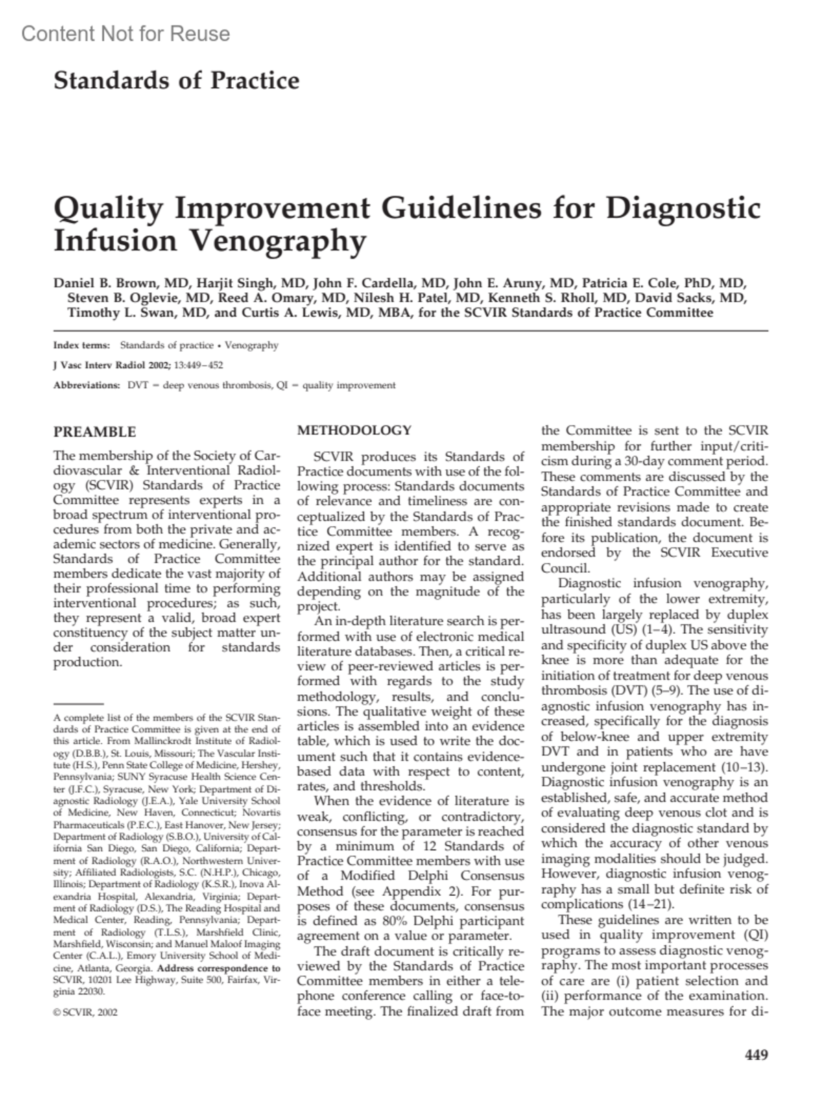 A complete list of the members of the SCVIR Standards of Practice Committee is given at the end of this article.