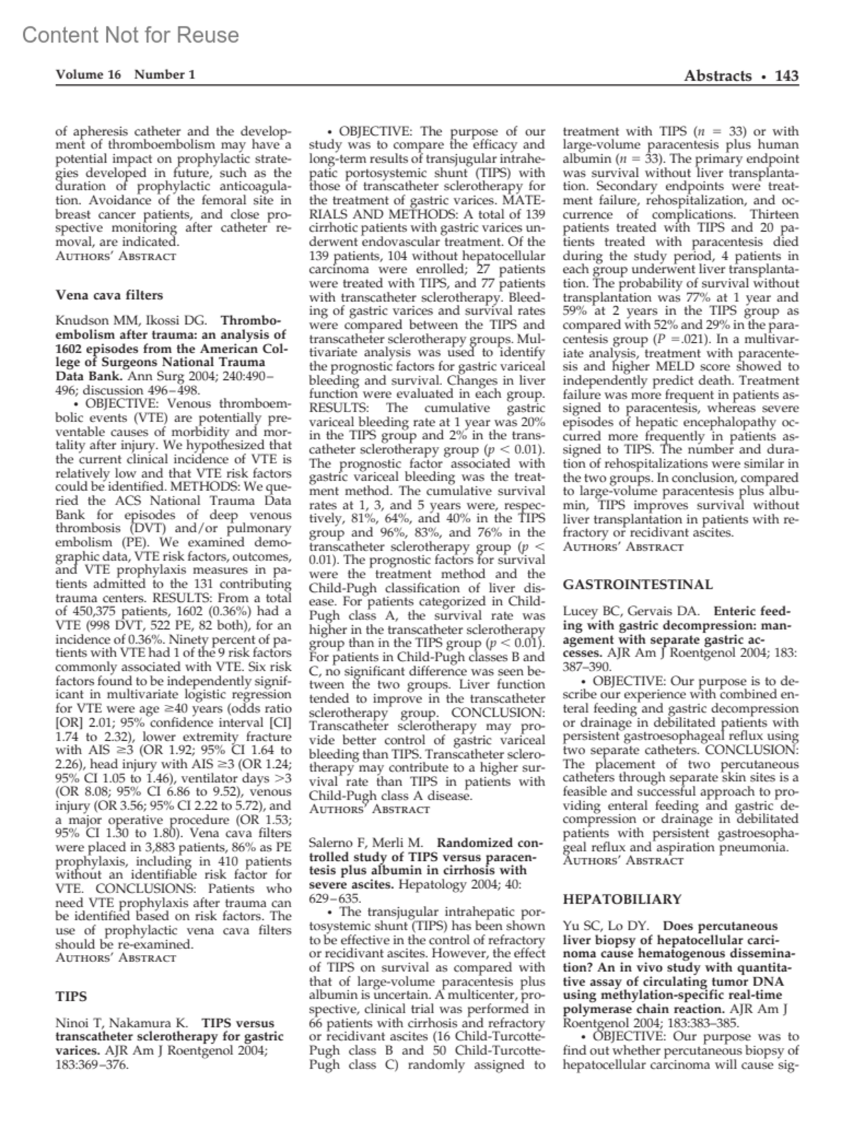 TIPS versus transcatheter sclerotherapy for gastric varices.Ninoi, TNakamura, KJournal of Vascular & Interventional Radiology 16(1):p 143, January 2005.Copyright ©2005 Society of Cardiovascular & Interventional Radiology