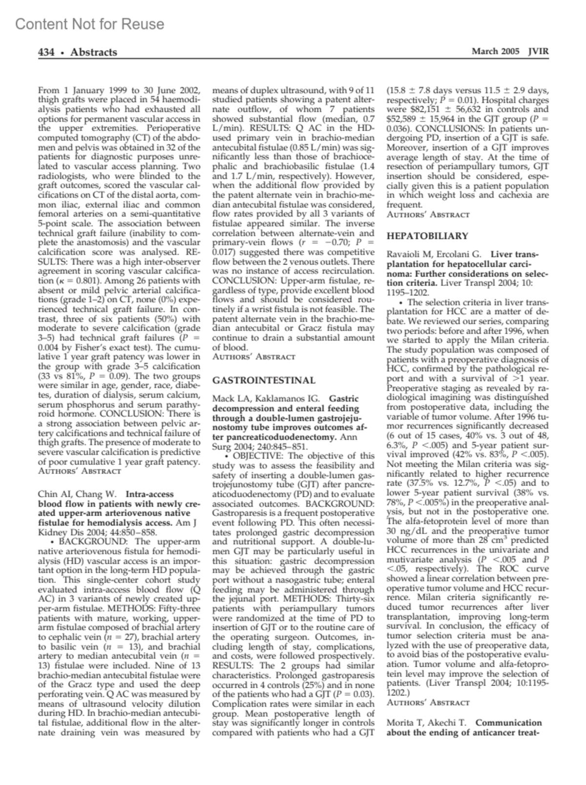 Journal of Vascular & Interventional Radiology 16(3):p 434, March 2005.