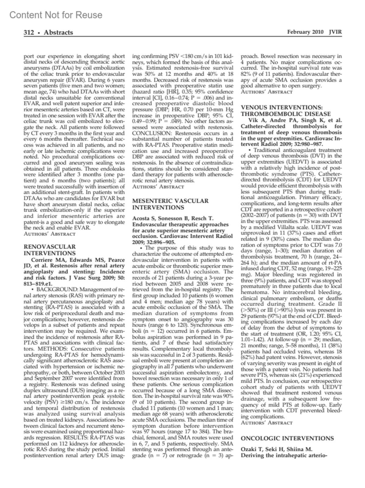 Journal of Vascular & Interventional Radiology 21(2):p 310-313, February 2010.