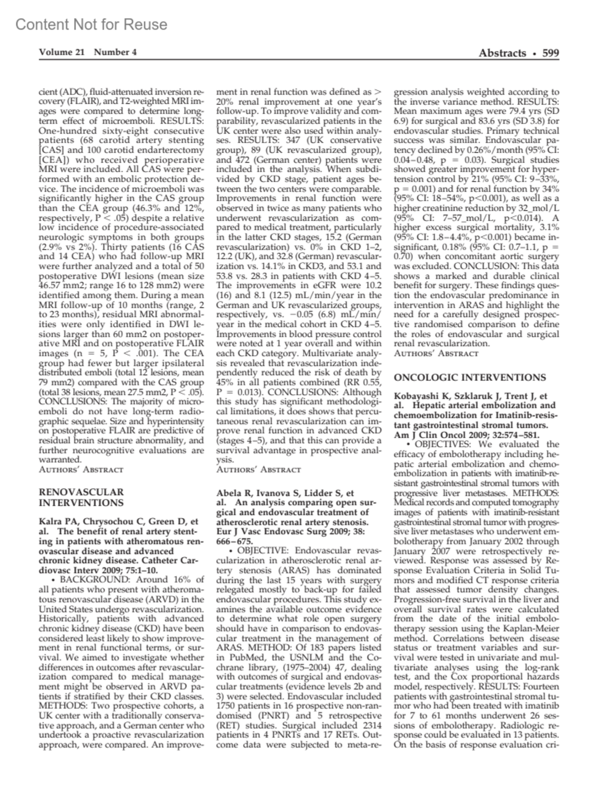 Journal of Vascular & Interventional Radiology 21(4):p 599-600, April 2010.