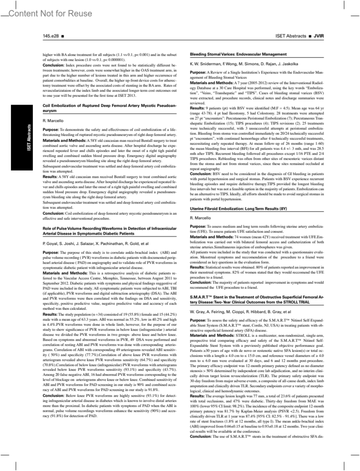 Journal of Vascular & Interventional Radiology 24(1):p 145e28-145e29, January 2013.