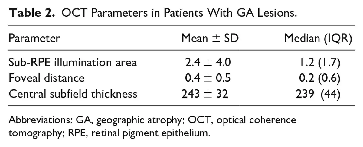 Although our study relied on OCT imaging and specifically sub-RPE illumination area analysis, this technology is not without drawbacks. Of 129 eyes, there were 50 instances of false positives with a sub-RPE illumination area greater than 0.4 mm2 (38.8%), where the sub-RPE illumination analysis detected atrophy that was deemed by the graders not to be atrophy. Anecdotally, this was often the result of choroidal atrophy, high myopia, subtle epiretinal membranes, and the presence of vitelliform lesions. Thus, although OCT can be a useful tool, it does not replace image analysis by a physician.