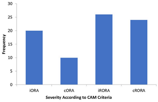 Abbreviations: CAM, Classification of Atrophy Meetings; cORA, complete outer retinal atrophy; cRORA, complete retinal pigment epithelium and outer retinal atrophy; iORA, incomplete outer retinal atrophy; iRORA, incomplete retinal pigment epithelium and outer retinal atrophy.