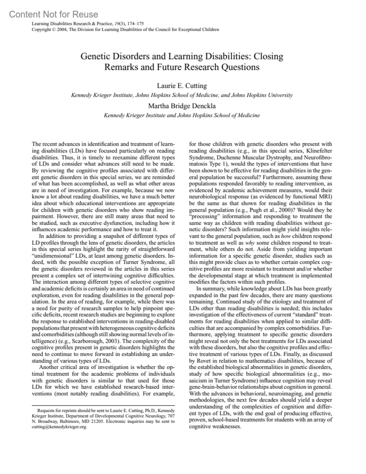 Kennedy Krieger Institute, Johns Hopkins School of Medicine, and Johns Hopkins University (Cutting)