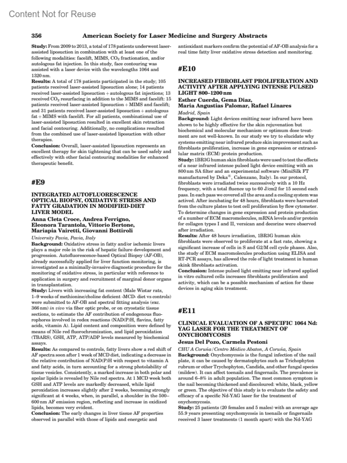Lasers in Surgery And Medicine 46(4):p 356, April 2014.