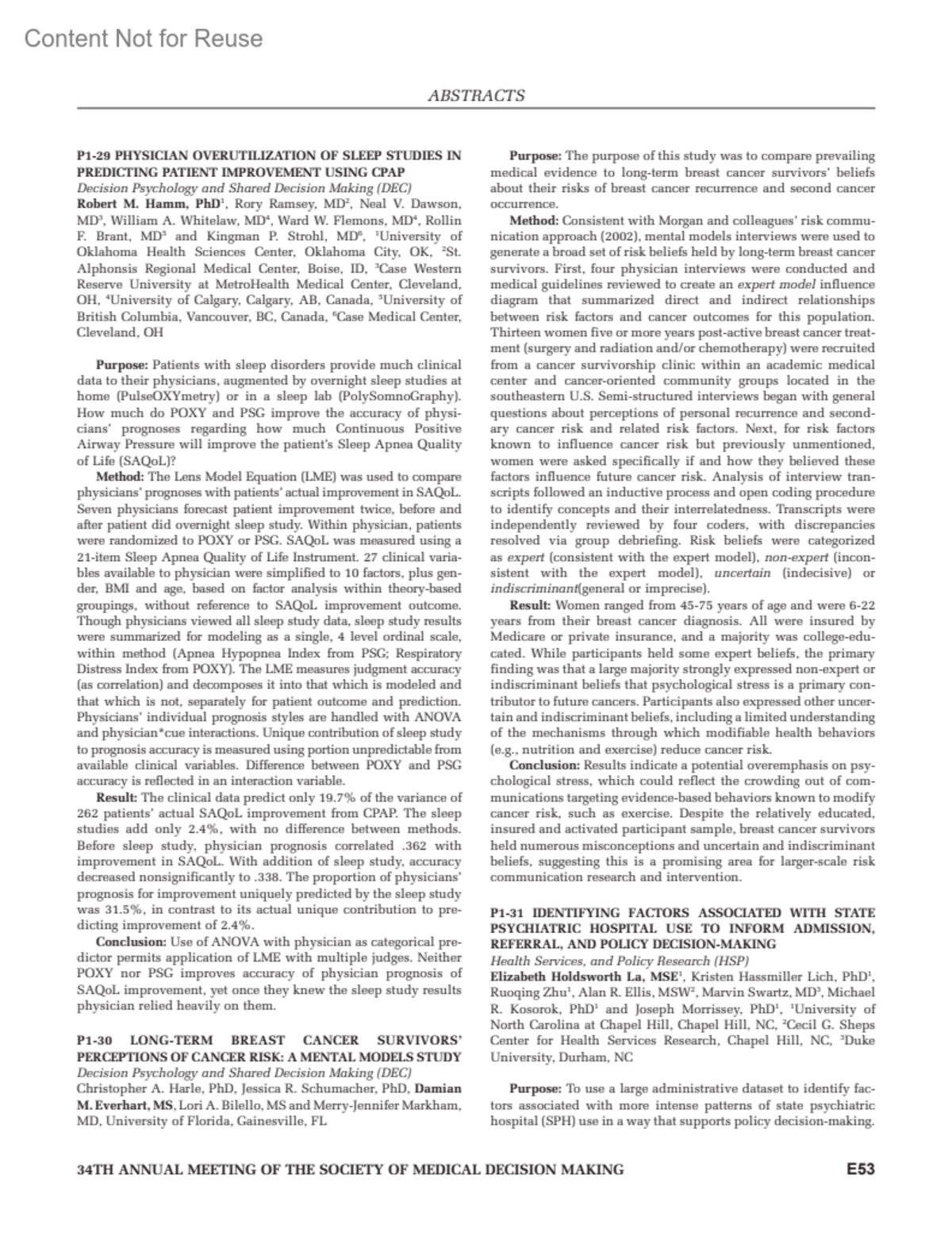 Long-Term Breast Cancer Survivors' Perceptions of Cancer Risk: A Mental Models Study:Decision Psychology and Shared Decision Making (DEC)