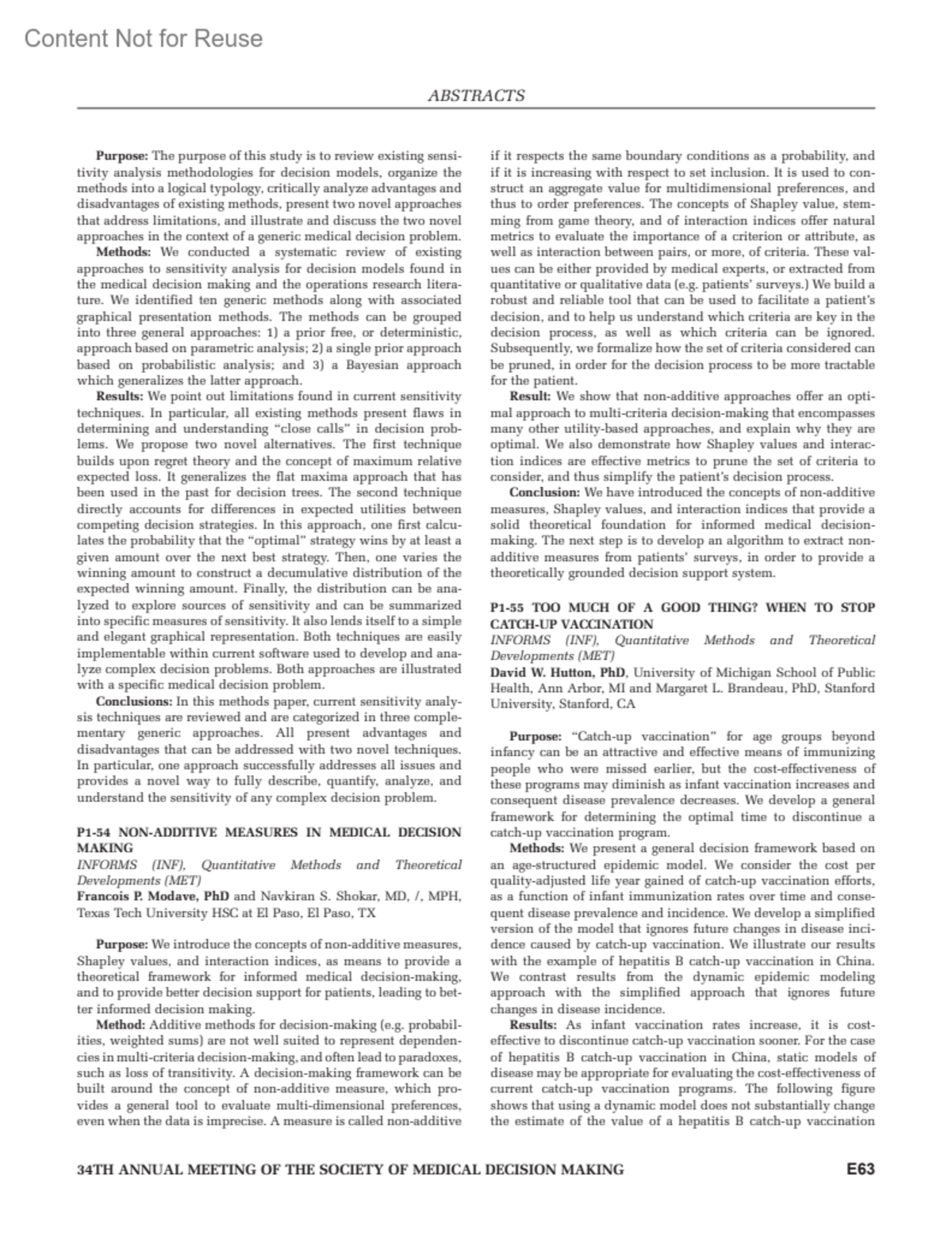 Non-Additive Measures in Medical Decision Making:INFORMS (INF), Quantitative Methods and Theoretical Developments (MET)