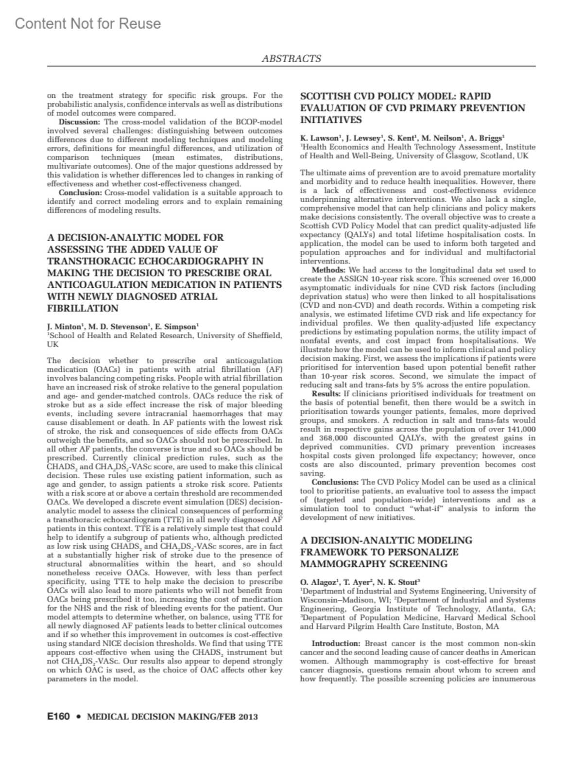 Medical Decision Making 33(2):p E160-E161, February 2013.