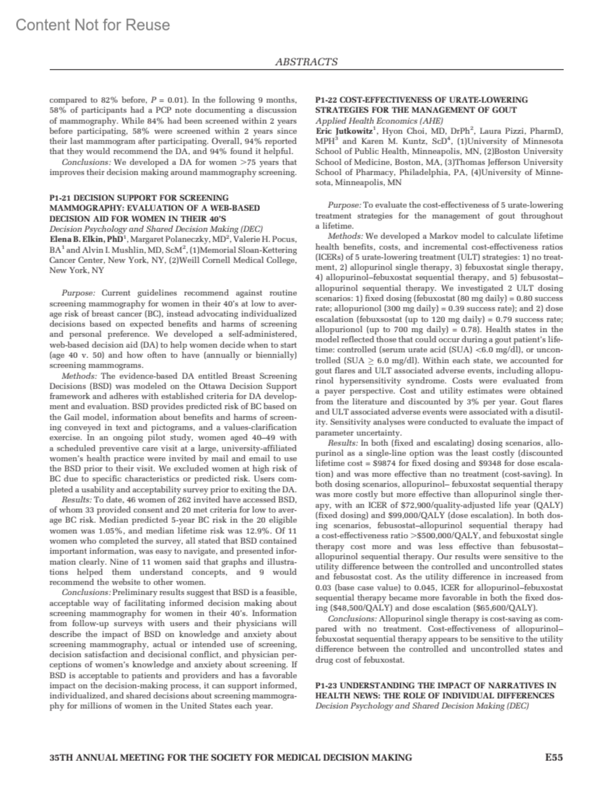 Decision Support For Screening Mammography: Evaluation of a Web-Based Decision Aid for Women in Their 40's: Decision Psychology and Shared Decision Making (DEC)