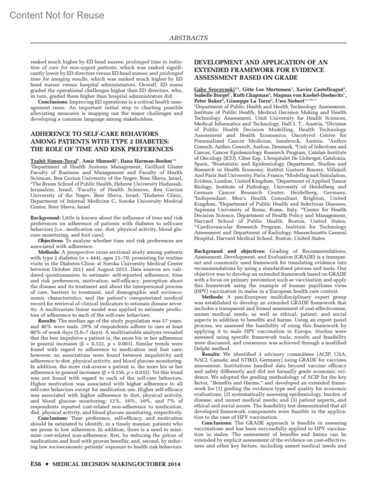 Adherence to self-care behaviors among patients with type 2 diabetes: The role of time and risk preferences