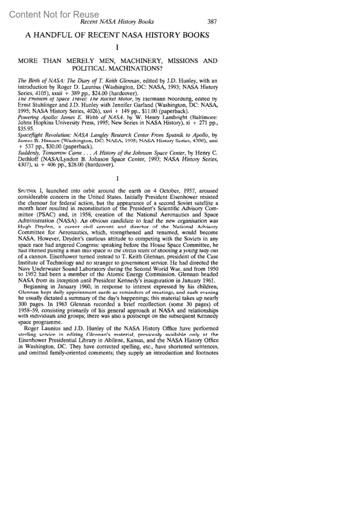 James E. Webb of NASA, by W. Henry Lambright (Baltimore: Johns Hopkins University Press, 1995; New Series in NASA History), xi + 271 pp., $35.95.