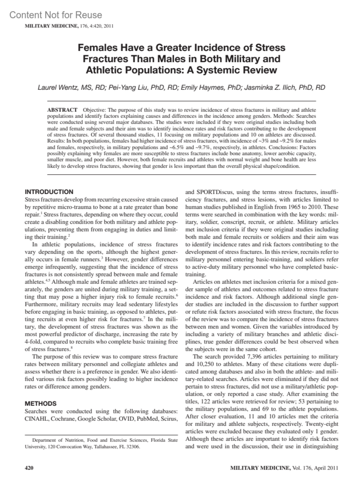 Females Have a Greater Incidence of Stress Fractures Than Males in Both Military and Athletic Populations