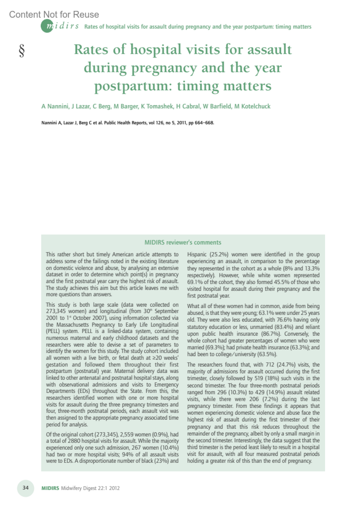 § Rates of hospital visits for assault during pregnancy and the year postpartum: timing matters