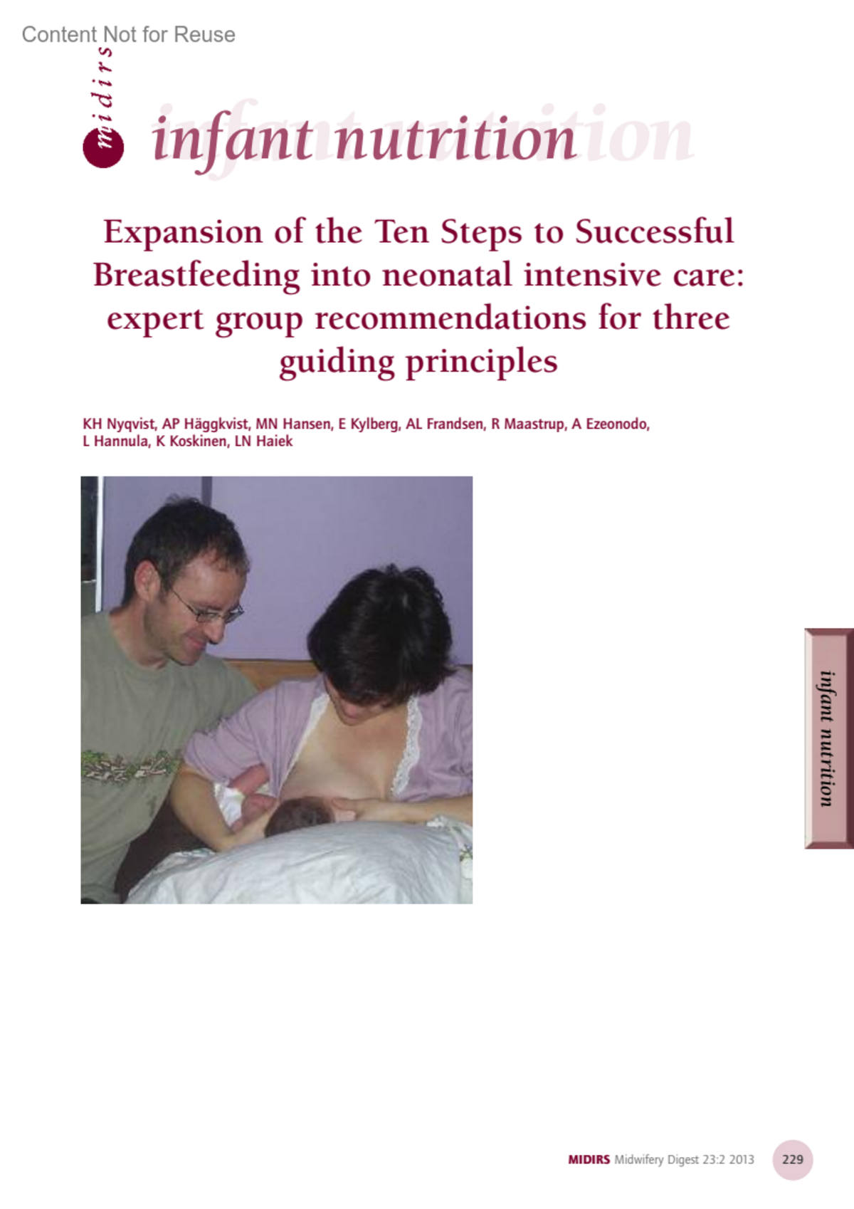 Expansion of the Ten Steps to Successful Breastfeeding into neonatal intensive care: expert group recommendations for three guiding principles