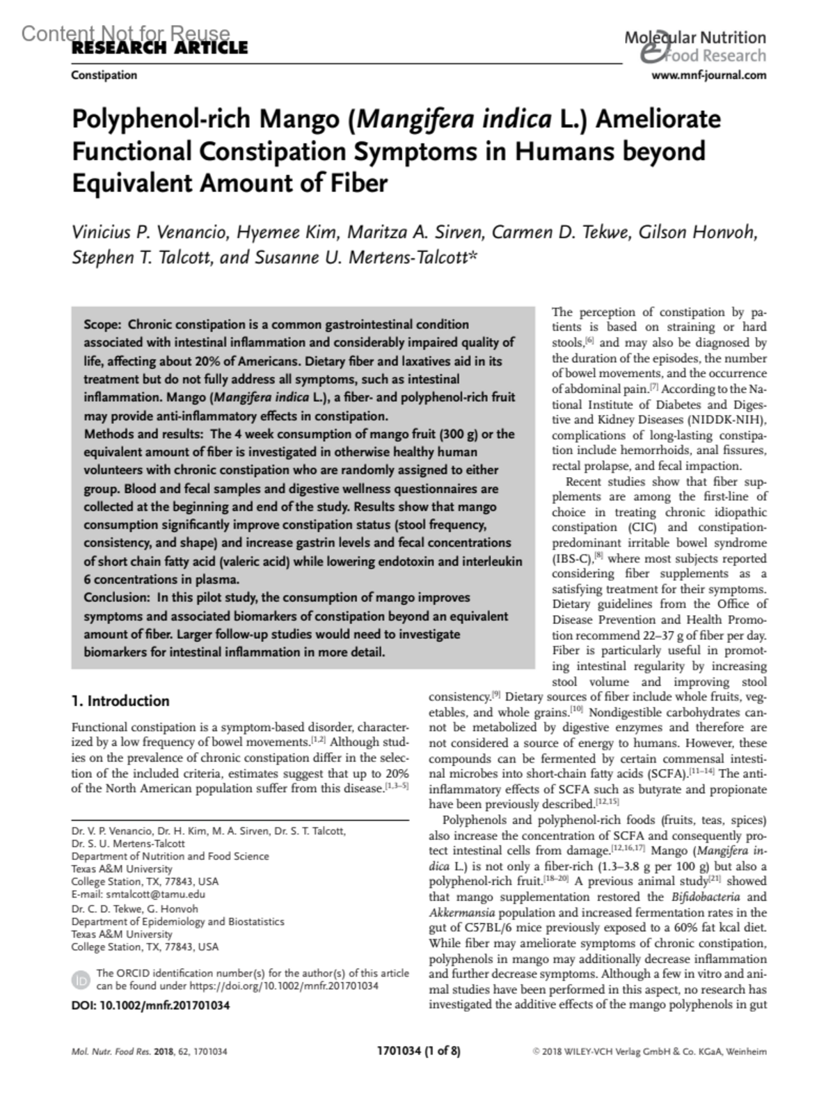 Molecular Nutrition & Food Research 62(12), June 2018. | DOI: 10.1002/mnfr.201701034