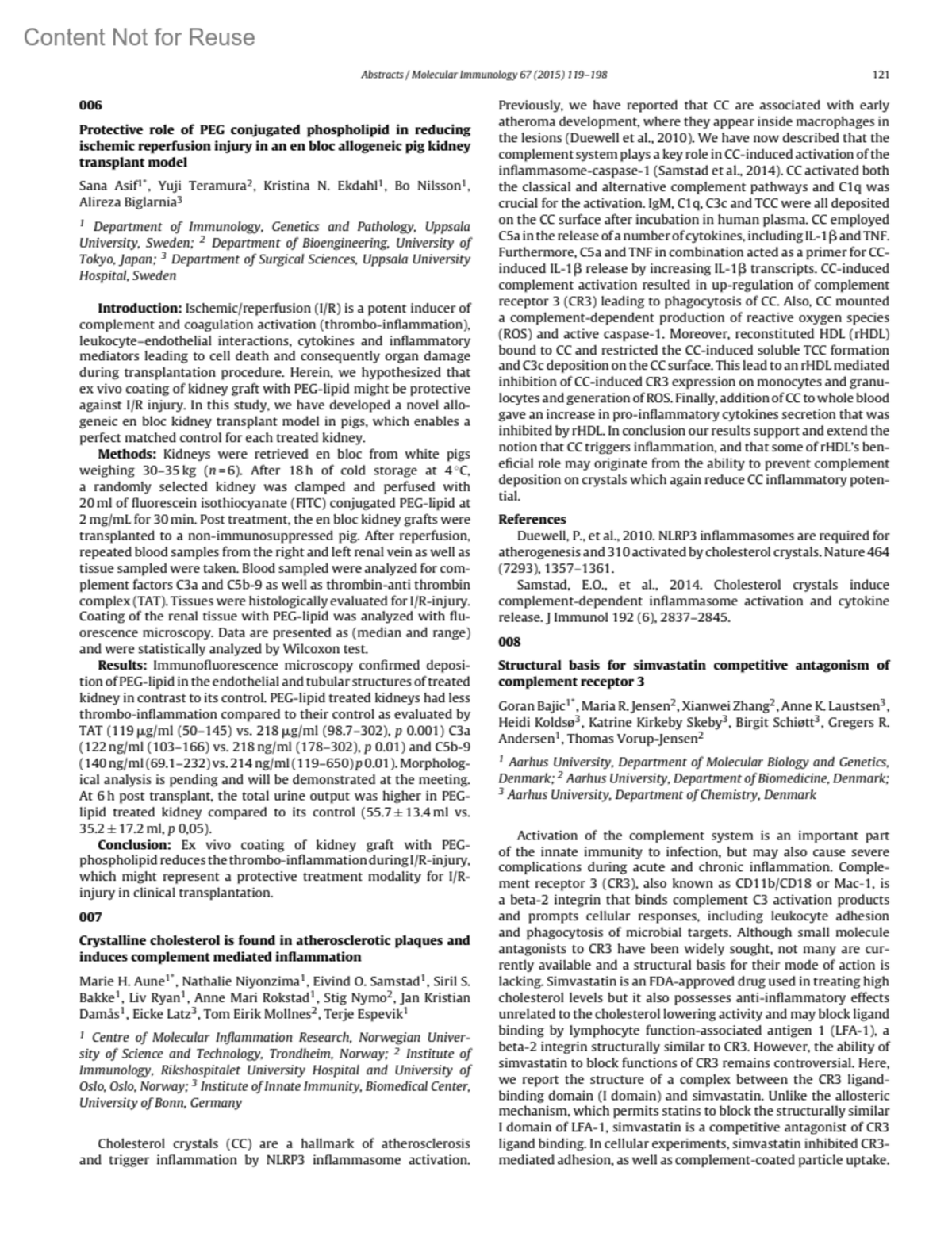 Molecular Immunology 67(1):p 121-122, September 2015.