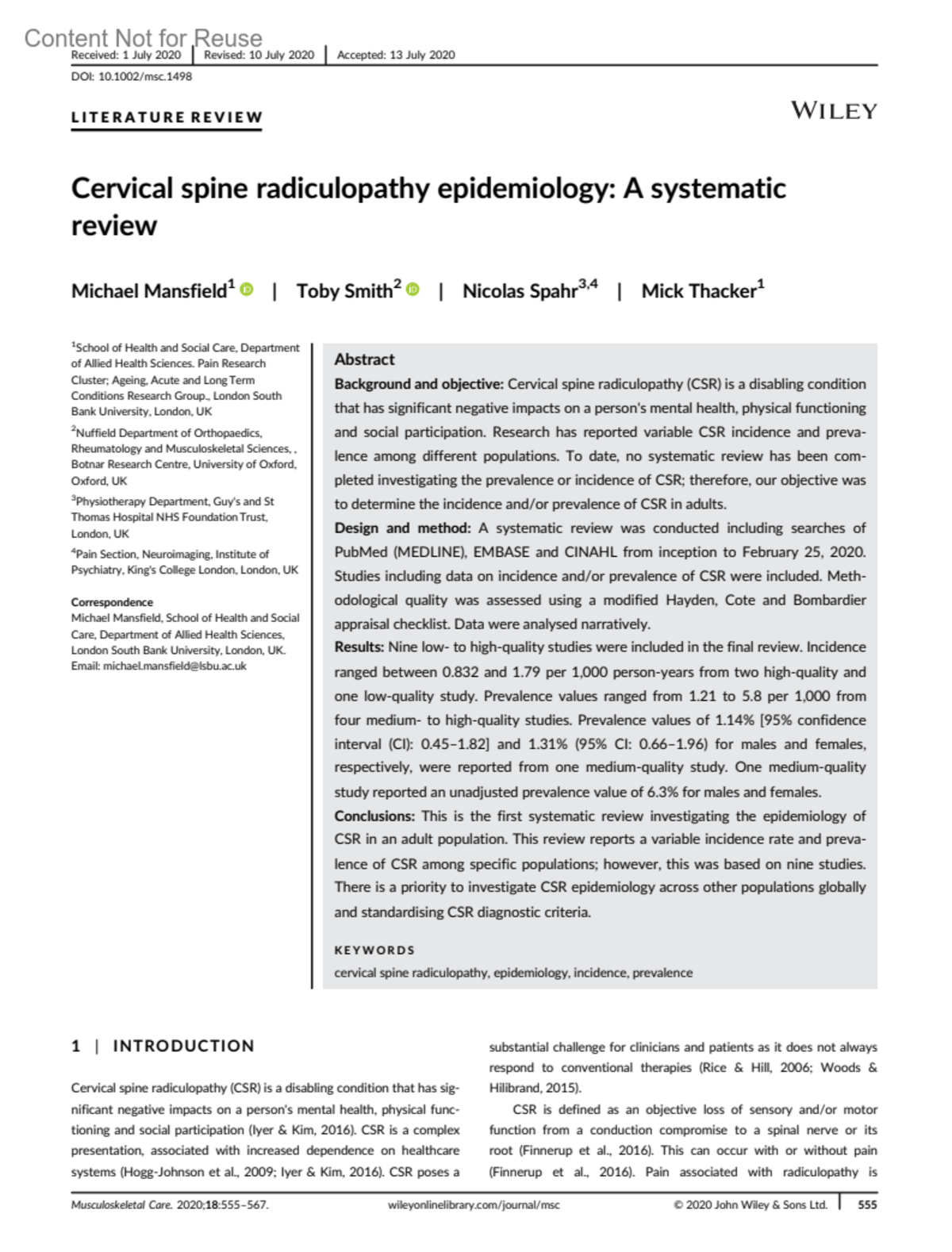 Correspondence Michael Mansfield, School of Health and Social Care, Department of Allied Health Sciences, London South Bank University, London, UK. Email: [email protected]