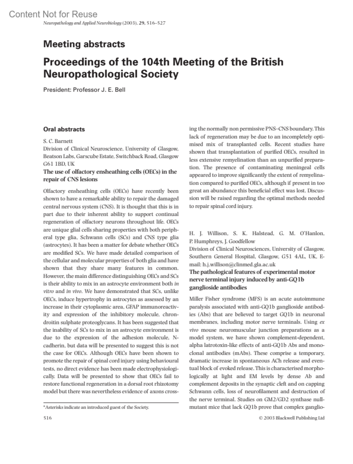 Neuropathology & Applied Neurobiology 29(5):p 522, October 2003.