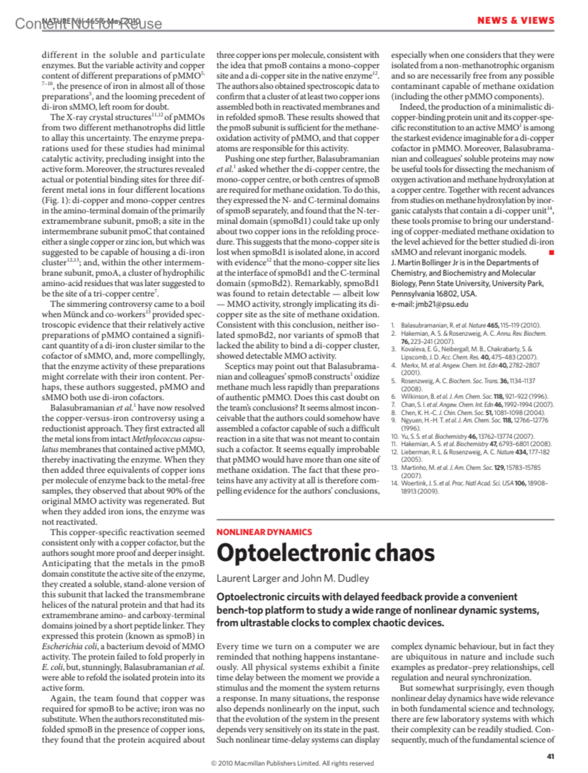 Nature 465(7294):p 41-42, May 6, 2010. | DOI: 10.1038/465041a