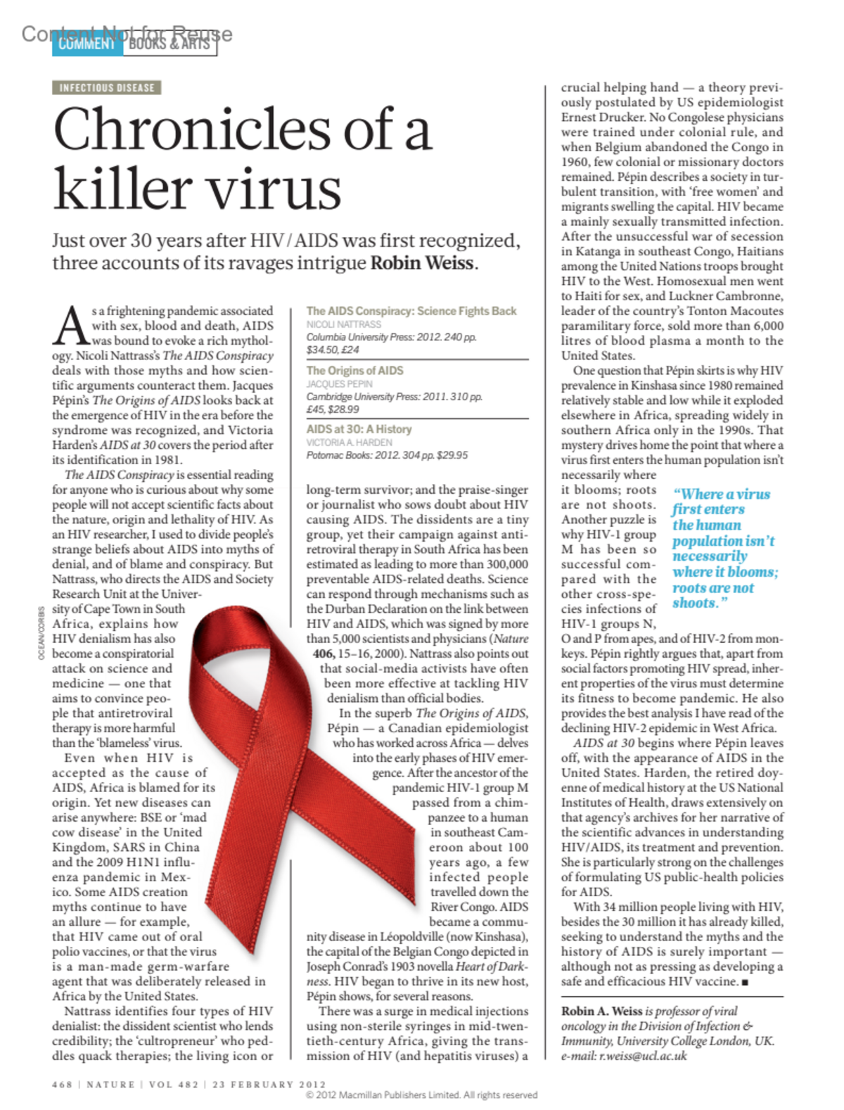 Just over 30 years after HIV/AIDS was first recognized, three accounts of its ravages intrigue Robin Weiss.