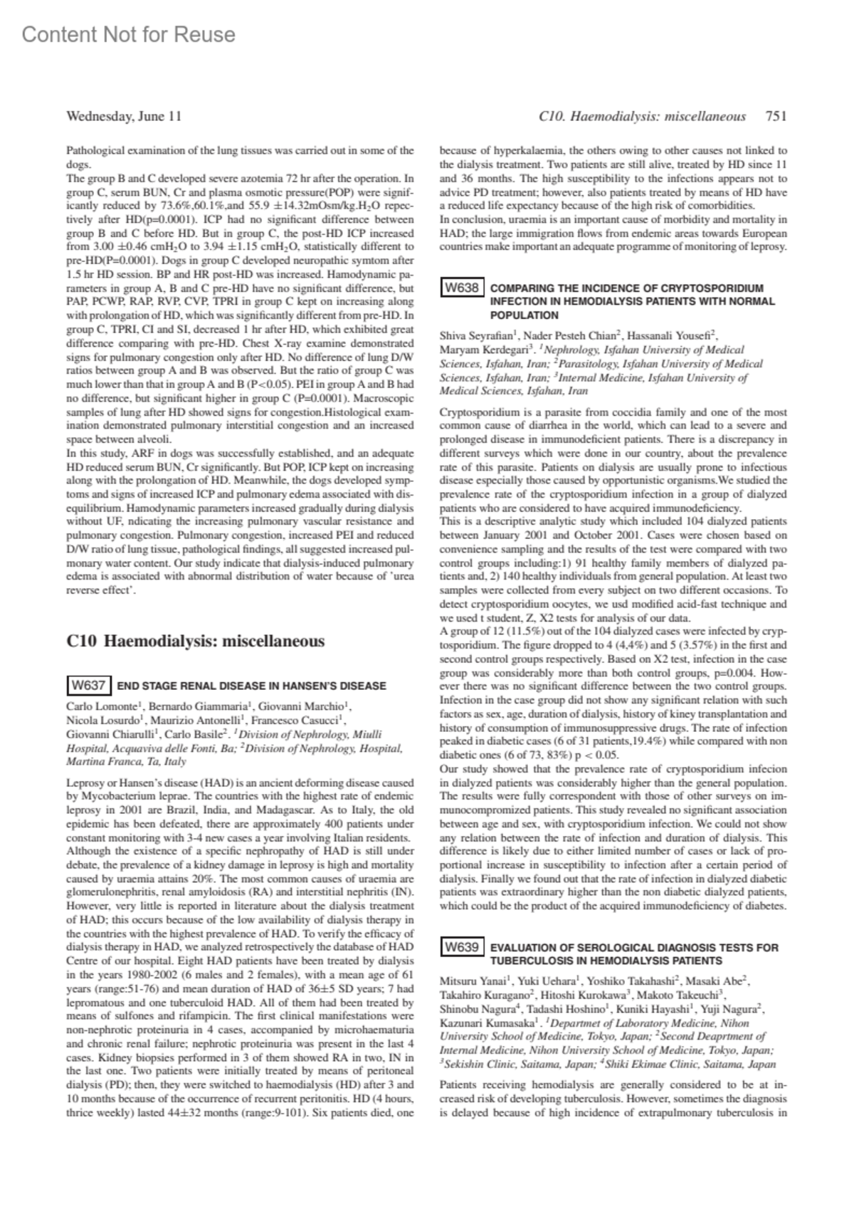 Nephrology Dialysis Transplantation 18:p 751, June 2003.