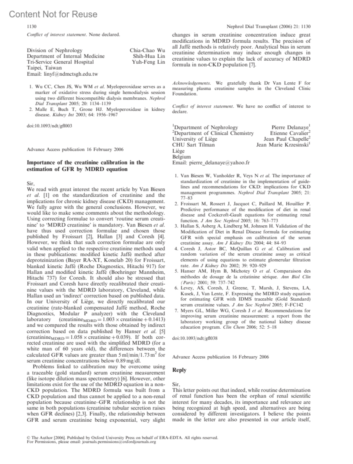 Nephrology Dialysis Transplantation 21(4):p 1130-1131, April 2006.